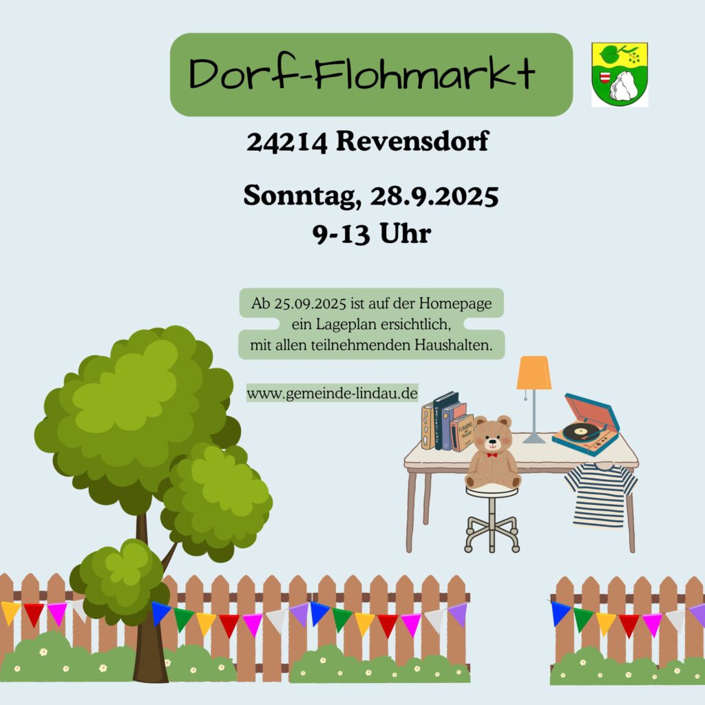 Die Übersicht über die teilnehmenden Haushalte beim Dorfflohmarkt Revensdorf 2024 ist hier verfügbar (aktualisiert am 05.09.2024).